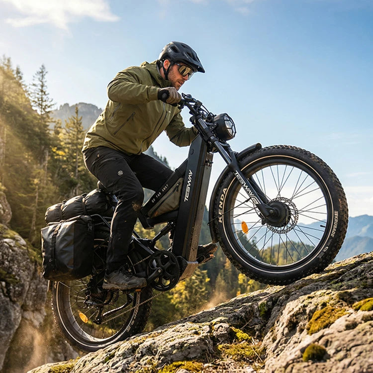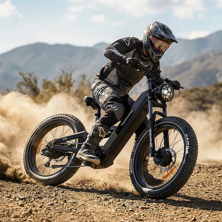 Ride farther and conquer any terrain with the TESWAY X9 AWD e-bike. Its industry-leading 120-mile range and dual-motor all-wheel drive deliver unstoppable performance on city streets or mountain trails.